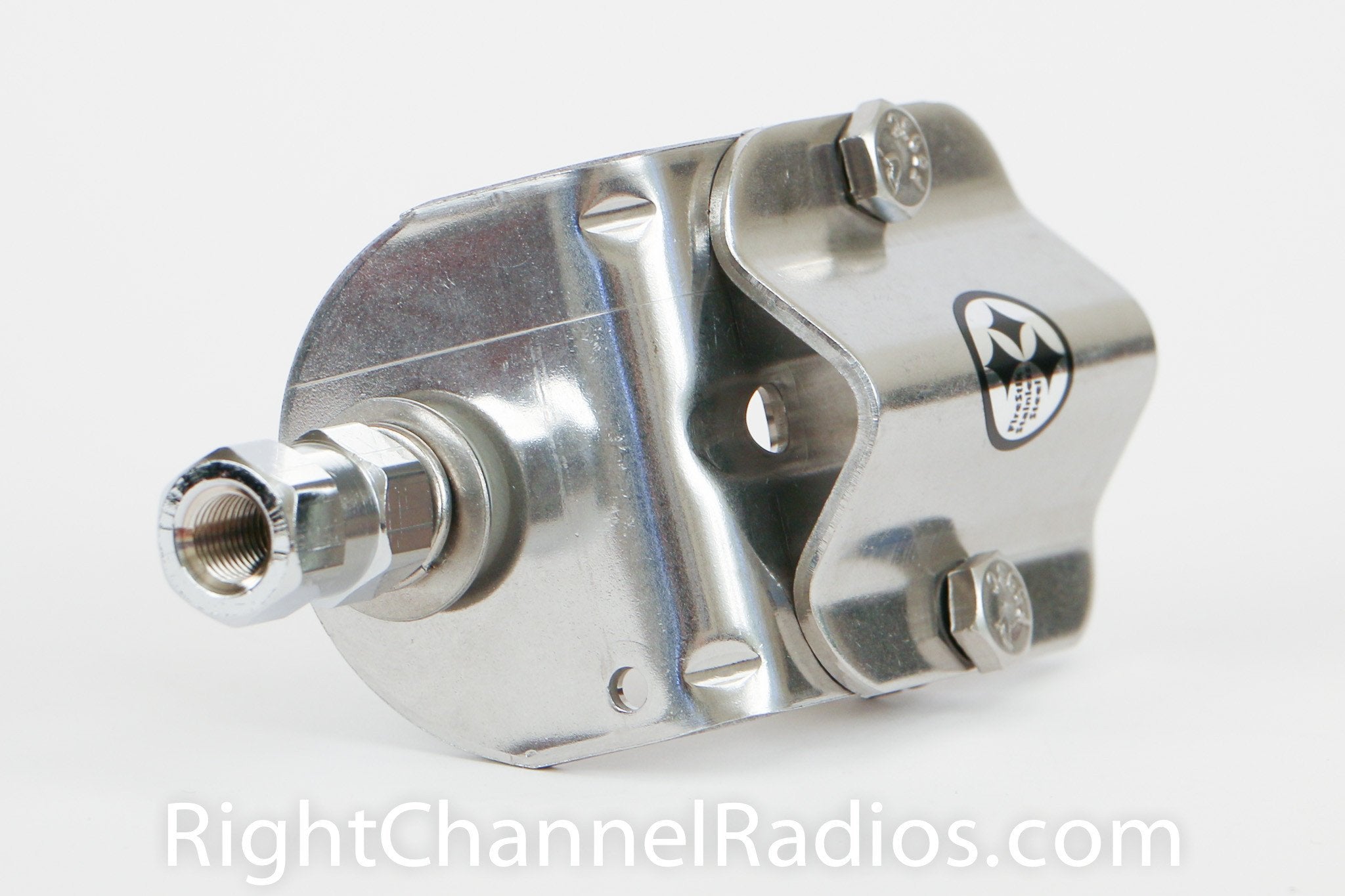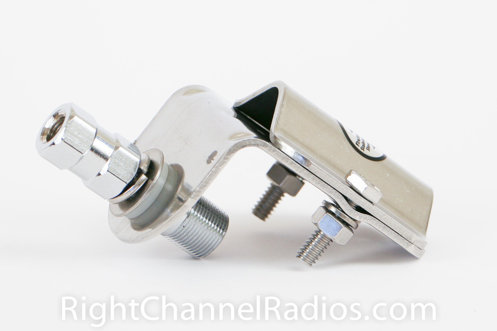 | Installation Notes: | The mounting clamp can be positioned horizontally or vertically for mirror arms and rails of either orientation. Omitting the clamp converts the mount into an "L" bracket that can be mounted to any flat vertical surface, such as the side of a motorhome or the back of a Jeep. The mount has a four-bolt pattern and comes with stainless steel mounting hardware and a PL-259 antenna stud. |