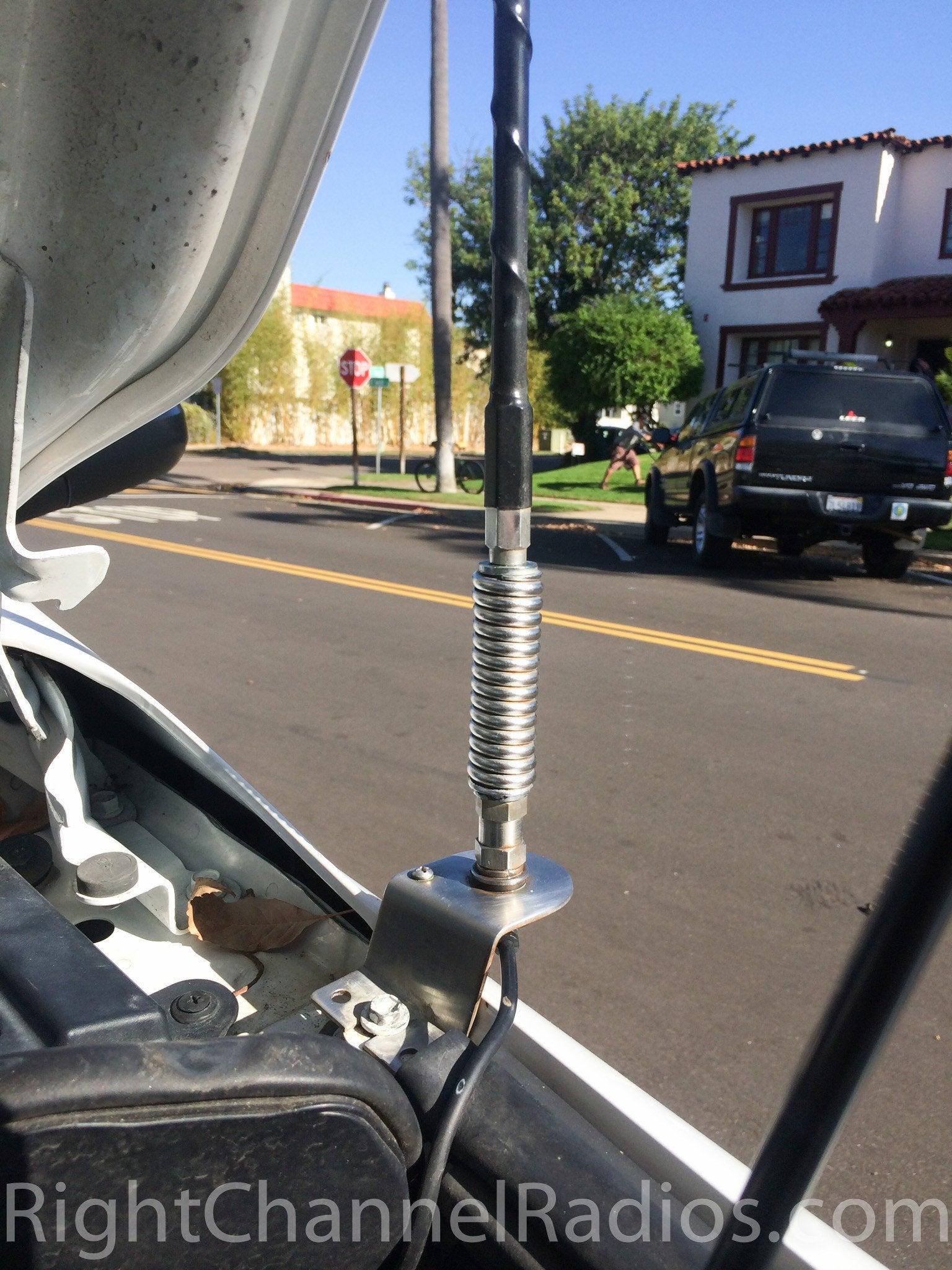 Designed for 2007 and newer Toyota Tundra, Sequoia, 4-Runner, and Rav 4. The mount is stainless steel, durable and rust-resistant. Mounts to the left side of hood fender and includes a lug-style stud compatible with ring or terminal-end CB coax cable. Made for antennas up to 4' tall. Dimensions: 1.5" tall x 2" wide x 3.25 long.