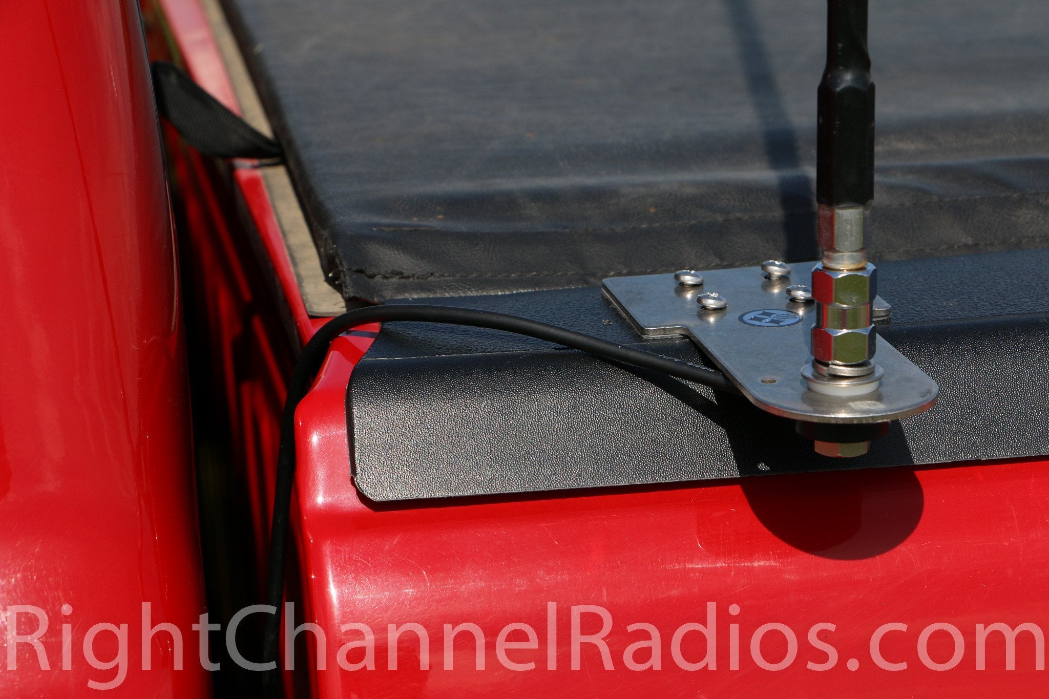 Firestik CB Antenna Mount: The square holes in the bed rails of full-sized pickup trucks are great for a no-drill antenna mount. The flat upper bracket is 6" (152mm) long and extends out over the bed rail, so you can mount your antenna without losing the ability to mount a camper shell. Includes stud mount, stainless steel brackets and hardware, and a gasket to protect the vehicle finish.